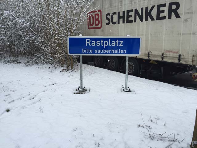 We drove towards Hamburg, Germany and got greeted with big pack of snow.