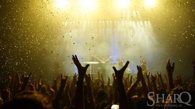 The show which I attended in Paradiso, Amsterdam, NL last year had LOTS OF MORE fire(works) effects. I guess 013 maybe just isn’t that safe for that much fire effects?!. Paradiso is a former church building and had a very high ceiling so it’s probably a lot less dangerous to shoot fireworks in the building, unlike 013, which has a lower ceiling. But 013 was picked as a venue for the release show, because it can accommodate a lot more people and from the looks of it the show was SOLD OUT!